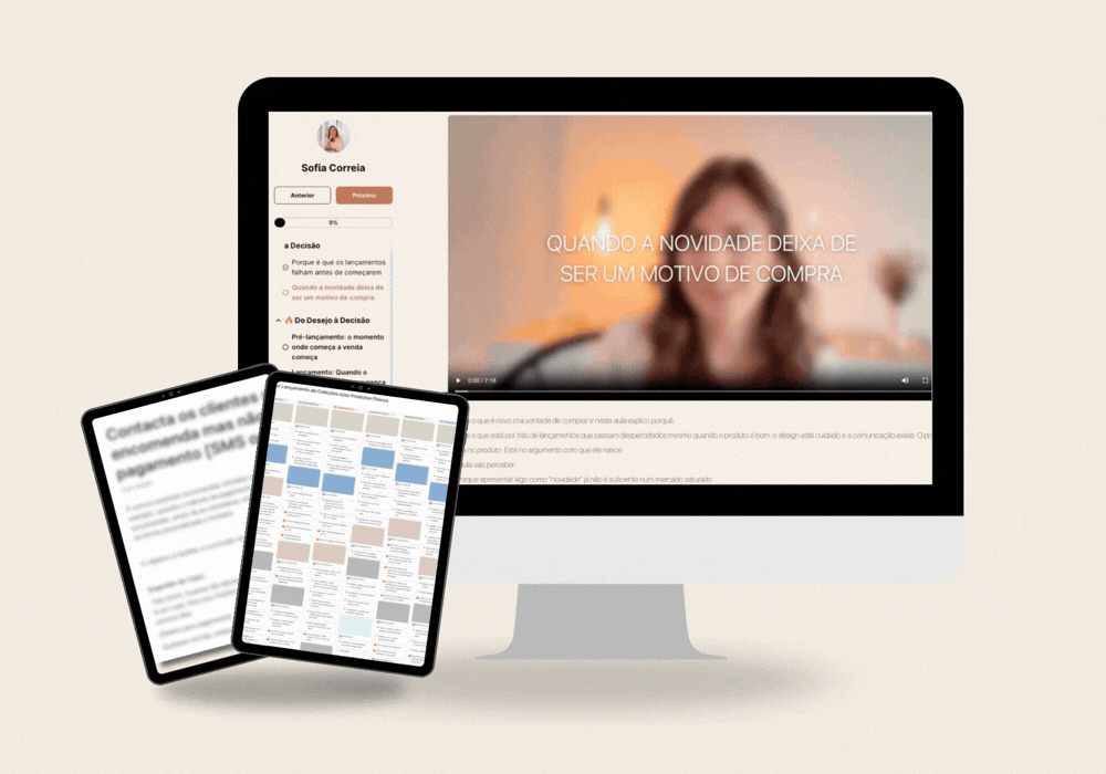 Aulas curtas e diretas para entenderes o “porquê” de cada fase. Como dominar os gatilhos que levam a cliente a escolher a tua marca e a valorizar os teus produtos.